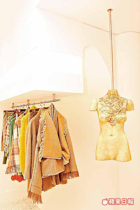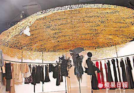 至於旗艦店新貌,當中最具特色是其中一間房的天花為dome形圓頂,並以鏤空通花圖案設計為中心,JoyceMa謂那是出自她多年好友、美國聞名藝術家MicheleOkaDoner的手筆,JoyceMa說:「因為佢話我喺國際時裝界有三十六年,好似蜂巢入面擁有蜂后嘅超然地位,於是將呢個idea注入,將蜂巢圖案放大,塗上金箔鏤空通花,再鑲嵌三隻鉑金翼details嘅銅製大黃蜂。」
