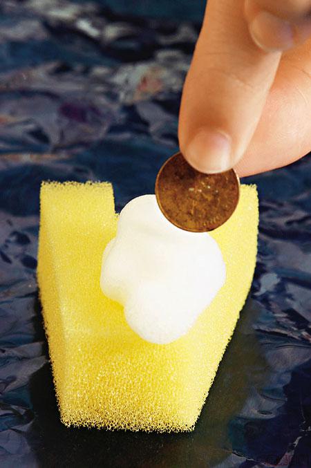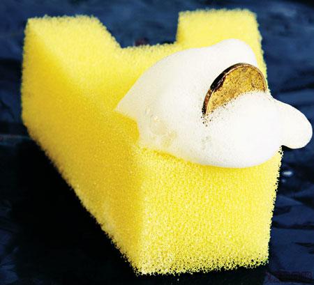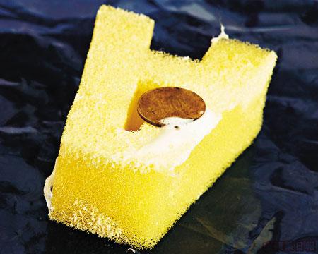 把潔面產品加水搓揉30秒,再放一毫硬幣上面,硬幣愈能浮面表示泡沫愈綿密細緻。
