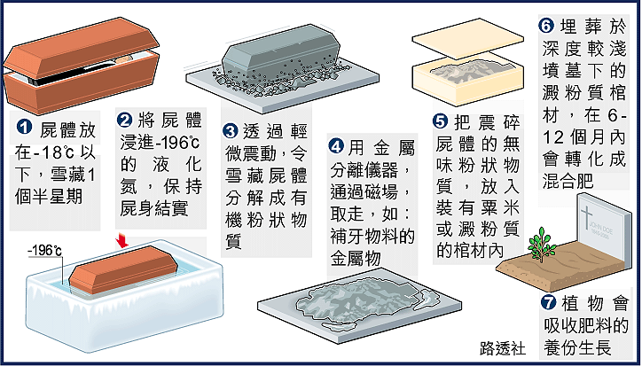 殮葬方法愈來愈多,也愈來愈環保。瑞典公司PromessaOrganic明年將推出環保的冷葬法。