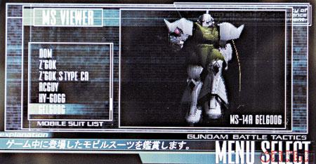 各種機體除咗個樣唔同,攻擊方式其實都有所不同;大家選MS時要留意機體的必殺技屬於遠攻定近戰型,若以遠程必殺技於埋身戰時使用,結果是有機會打空,相反亦然。咁多機體,以肩炮搭激光槍的MUDROCK最好用,配合埋佢嘅高機動性能,好多人爆機都靠佢;就個人喜歡,是自護軍的老虎系列,埋身技超強,三劍打Down敵人後,重可以用電鞭將敵人拉起、再斬三刀,一般二打六角色,絕對一招了!