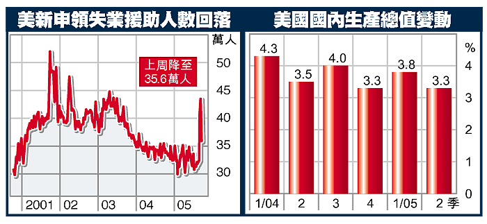 另外,美國第2季經濟增長終值為3.3%,與上月底公布的數字相同,受惠於汽車、家居和商業設備需求轉殷。雷曼兄弟首席美國經濟師哈利斯說,最新數據顯示美國經濟在風災前仍健康。