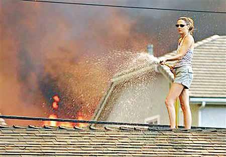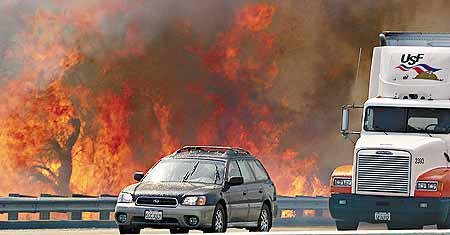 聖費爾南多谷已經被濃煙遮蔽,文圖拉縣一些街道覆蓋着一層像白雪的灰燼,空氣污染迫使加州大學要停課,消防員正努力撲救大火,又派出飛機和直升機冒險在晚間灑水,保護超過二千間房屋免受大火波及,並闢出一段防火帶,阻止長達十六公里的火龍越過一○一州際公路,進一步向太平洋沿岸擴散。不過,仍然有至少一座住宅和五幢建築給焚毀。
