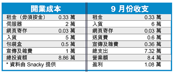 港人愛吃零食,從事資訊科技工作的林松堅,3個月前夥拍兩名好友,開設網上零食店「Snacky」,專門銷售各式各樣的日本零食,希望在零食市場分杯羹,結果開業2個月便做到收支平衡,每月定單持續上升,成功的主因,是推出貨到收錢的付款形式,打破客人不放心於網上付款的心理關口。