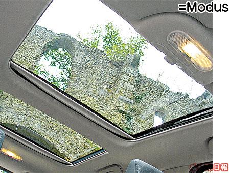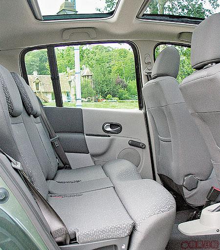 小車子受到車身的大小規限,車廂再花巧也不能彌補,因此設計Modus車廂時,全以空間感為前提,雙天窗布局令車外的陽光更充份的照入車廂,令空間感以幾何級數提升。中置電子儀表板設計有利駕駛者有更好的前方視野;座椅方面,Modus正常情況下後座是3座位,但有需要時後座可變成雙座,令乘客有更理想的肩部空間。前座的承托力不算特別豐富,但勝在有高低調節,坐姿更舒適自然。