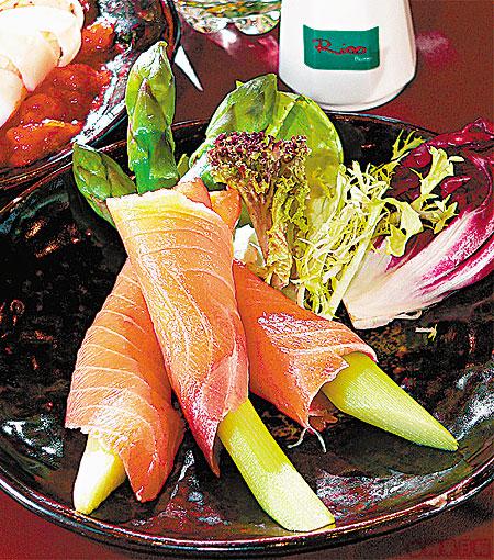 簡單的下酒菜用煙三文魚與來自澳洲的鮮蘆笋一同捲起,沒有多餘的調味更能食出材料的鮮爽,Miki愛清淡及簡單的食物,難怪成為她的最愛。