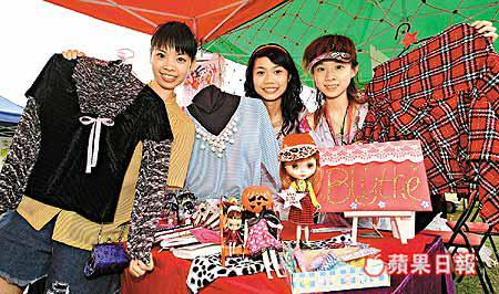因創業成功,冼美玉邀請了同班同學梁穎珊及盧慧瑩協助設計產品、改裝衣服等。她們昨日特別穿上自己設計的衣服擺攤位,以吸引客人。