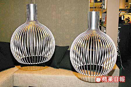 芬蘭名師AlvarAalto有份創立的Artek是世界聞名的家具品牌,今年該公司為慶祝建立70周年而推出的紀念版製品,以藍莓色作主題。具有多款尺碼選擇的梳化售價約1.1萬至1.8萬港元,AlvarAalto於1950年設計的經典吊燈(圖)售價約2300至2700港元。