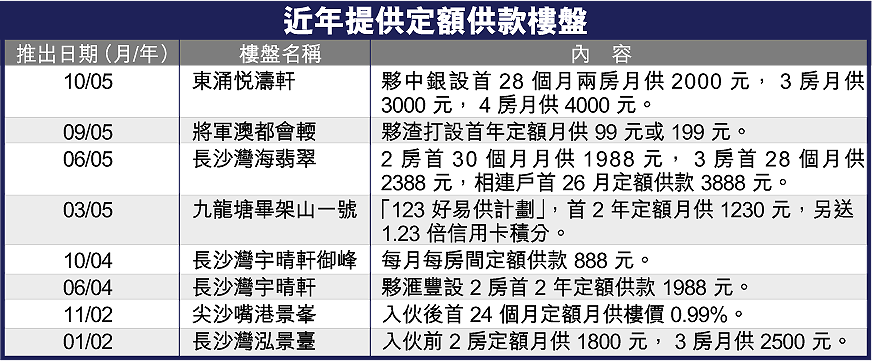 過去3年,長實多個新盤均以超低定額供款吸客,今次優惠與年中長沙灣宇晴軒海翡翠相若。