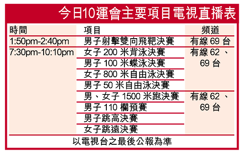 三日前已改寫一百米背亞洲紀錄的歐陽鯤鵬,今次快了舊紀錄兩秒○八;現年二十二歲的歐陽鯤鵬雖在十運會屢創佳績,但直言沒有多想北京奧運,他謙虛說:「站在年輕泳手堆中我是老將了,三年後的事不會多想。」