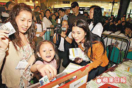 無綫台慶劇《胭脂水粉》一眾演員包括黎姿、陳豪、蒙嘉慧等,昨日出席於鑽石山荷里活廣場舉行的「舉世最大公益箱」巡迴展覽,還即場義賣愛心小錢罌。