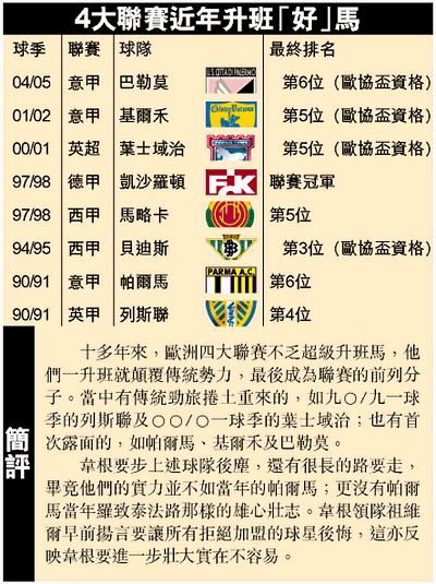 首次躋身英超的韋根出身「草根」,季初一度被視為大魚腩;但十場聯賽過後竟列第二,五個失球更為歐洲四大聯賽之冠,一時間韋根奇迹成為熱烘烘的話題。其實,韋根「發迹」的原因十分簡單,就是齊心、謙虛和運氣。文:法比奧、高洛文