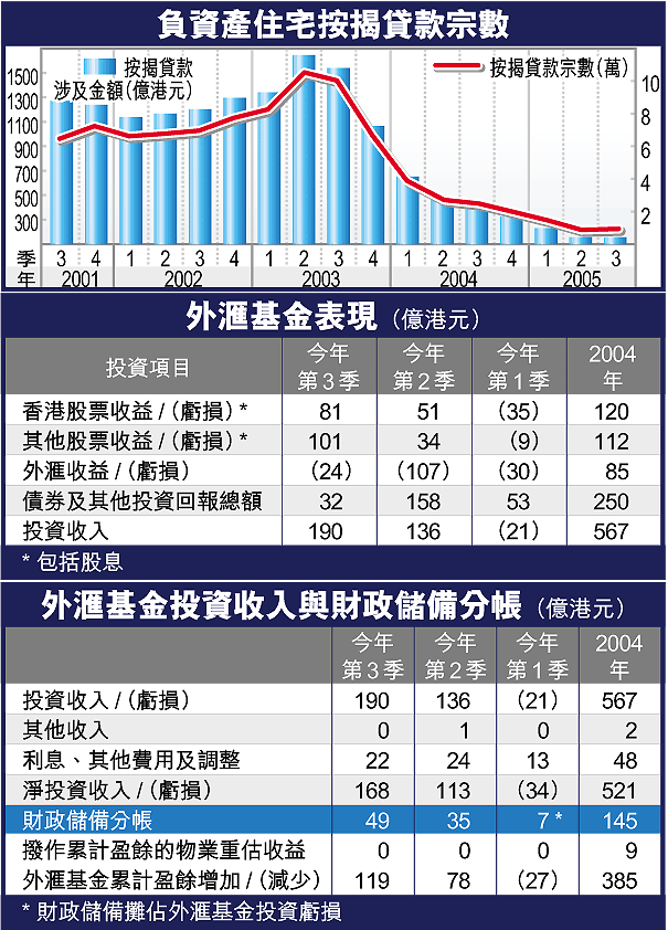本港負資產問題再惹關注,在進入加息周期及樓市銷情放緩下,截至9月底止負資產按揭宗數在兩年內首次回升,較6月底增加逾300宗;涉及貸款160億元,較前季增10億元。金管局總裁任志剛認為,情况「值得大家留意」,但毋須過於憂慮。銀行界人士指今季數字可能再升。
