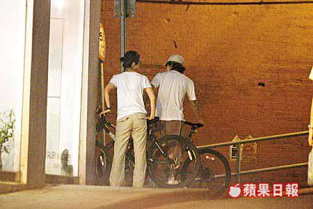 二人邊推車邊聊天,其間見星爺不時向四眼高妹指指點點,似在教授對方踩單車技術,約談了兩分鐘後,他們才跳上單車,朝堅道方向進發。