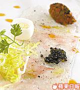 吃的時候要拌上以茴香、洋葱、番茄膏打成的醬料,還有魚子醬。