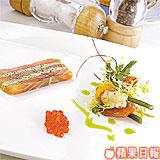 無獨有偶,來自加拿大的NeilPorter同樣以海鮮上陣,三文魚、鱒魚、龍蝦等等,都是加拿大的特產,而他亦曾在法國的Drouilles城堡裏當大廚。Neil覺得每道菜除了要帶出鮮味,還要顧及賣相,他在世界烹飪奧林匹克上得到的金牌,是屬於裝飾組別。像下圖那道生龍蝦薄片,最初我還以為碟上那薄薄透明的是醬汁,原來大廚將龍蝦肉輕輕剁成薄片,除了可帶來入口即溶的口感,在賣相上更令人驚喜。