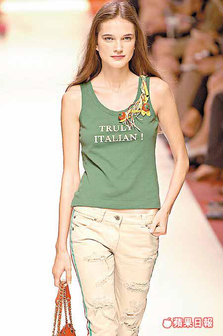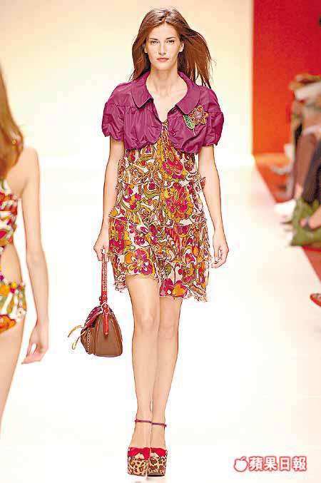 在明年二○○六春夏系列中,Moschino創作總監RossellaJardini化身fashioncook,將意大利及印度味道共冶一爐,炮製出一道充滿歡愉感覺的時裝大餐,形態極盡girly,大玩顏色與圖案。