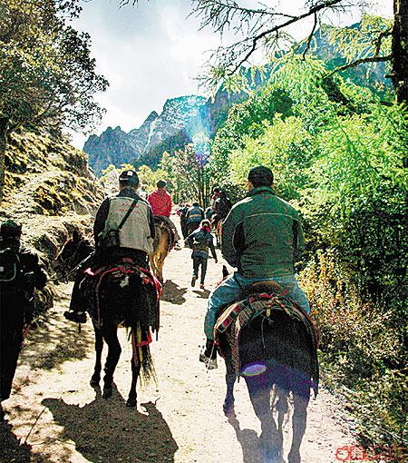 天又亮了,五百里外的稻城啊!你是那麼的遙遠,心中正暗罵自己「攞嚟賤」,可是騎上了往洛絨牛場的馬背,耳邊又像響起某香煙廣告的音樂,腰背即時挺直,傲視前方。1928年美國的若瑟夫.洛克在《國家地理雜誌》發表的三座神山相片及描述沖古寺、土司王國、山賊土匪……等等傳說,更添加了亞丁往洛絨牛場路上的遐想,彷彿穿越時光隧道回到清末民初。