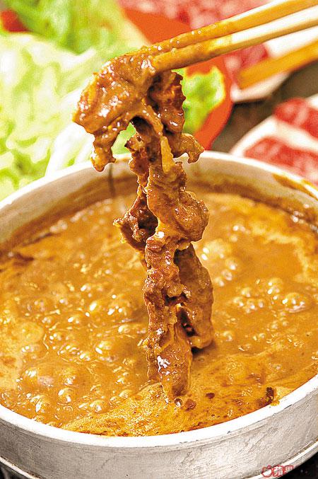以牛骨湯做底,加入由五香粉、大地魚、辣椒及花生等材料製成的沙嗲醬,愈滾愈稠兼香濃。