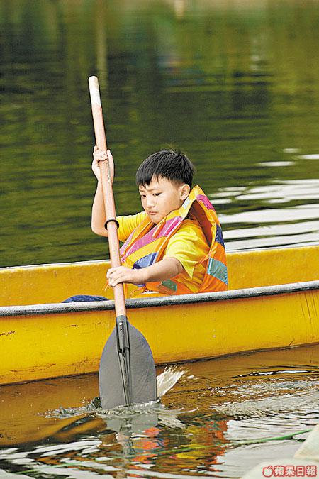 扮完車手馳騁賽道後,一於轉戰湖上,大玩印第安獨木舟,泛舟湖上,順道與魚兒來個近距離接觸,一於由陸上玩到落水。