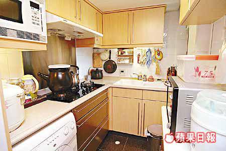 單位有少許裝修,客廳梳化上方建層架放飾物,走廊建天花櫃及鋪牆布,廚房加設薄櫃。惟外望樓,景觀一般。