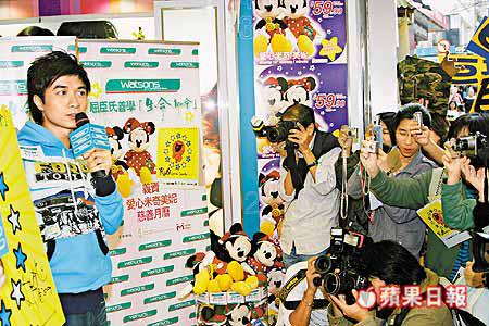 此外,基仔於下午去到銅鑼灣為善學基金舉辦的「生命.新機會」義賣活動擔任嘉賓,並親手設計月曆用作義賣籌款。
