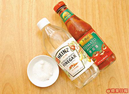 混醬料:茄汁4湯匙、白醋3湯匙、砂糖3湯匙、生粉少許