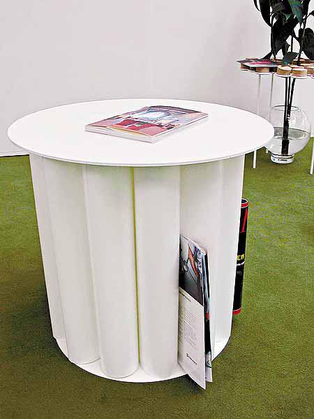 這張名為Squeeze的茶几,柱位以軟膠物料製成,可以夾着報紙或雜誌,是JeremyEdwards另一得意之作,零售價為325歐元。