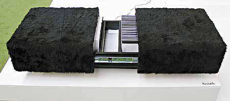 名為FurTable的茶几儲物兩用櫃,可存放DVD,是比利時設計師NicolasDestino的作品,除了毛毛以外,尚可用皮或毛加皮作桌面,色調可自行挑選,批發價為1500歐元。