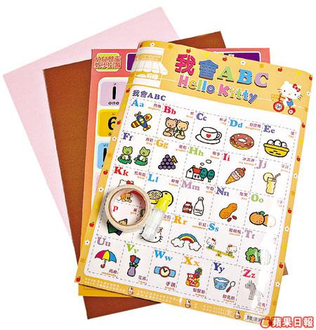 硬卡紙、字母卡或數字卡一大張、雙面膠紙、𠝹刀