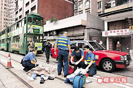 【本報訊】四十五歲姓吳男子,昨晨九時許,疑因一時心急未有看清楚交通情況,在西環堅尼地城海旁橫過馬路,一輛載着三名乘客的士駛至收掣不及將他撞倒,事主頭部受傷流血,傷者妻子接獲通知趕抵現場,見丈夫受傷流血一度哭泣,傷者送院治療後無大礙。五十歲姓蘇司機酒精測試無飲酒。