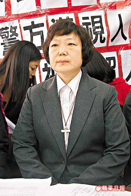 Kim昨日與多名獲釋的韓國婦女一同會見記者。經過二十二小時的羈留調查及遭受本港警方的無禮對待,Kim表現得愁眉深鎖,她坦言,作為神職人員卻被警方像對待犯人一樣鎖上膠帶,雙手一直被反綁,令其感到極盡侮辱,更不知應該怎樣向天主講述她所犯的「罪行」。