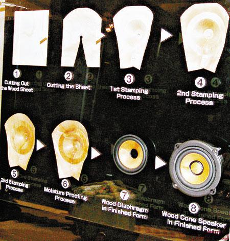 大部份弦樂器都採用木做音箱,想喺屋企聽CD都原汁原味,就要套AMP嘅振膜都用埋木,先可以達到最理想嘅共鳴效果。雖然以往要用木嚟製造振膜係非常困難,不過JVC花咗20年研究後,首創咗木製振膜單元揚聲器,突破性嘅技術就係先用日本清酒將樺木浸軟,切割成只有0.28毫米嘅薄木片,製造成振膜之後再用樹脂浸泡以作定型,就成為咗JVCWoodCone系列嘅揚聲器振膜。