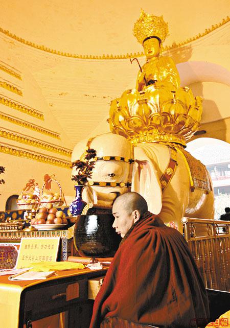 來到峨嵋,先是踏足海拔最低的報國寺,這是峨嵋的第一景,上天待我不薄,在這裏,我遇到峨嵋上最老的武僧通永大師(105歲),雖然被其他僧人扶着,但仍走得很快,攝影師也要急步追着才拍到照片。
