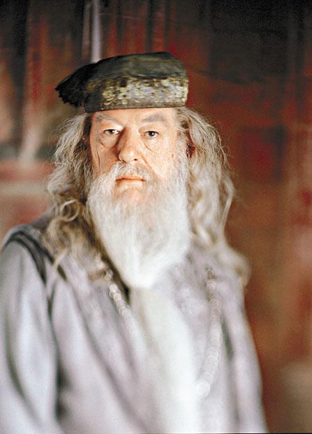 長長的銀白色鬍鬚可塞進腰帶裏。他是霍格華玆魔法與巫術學院的校長,極受學生尊敬,魔法界更公認他是當代最偉大的巫師。