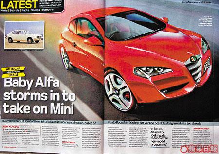 意大利愛快羅密歐(AlfaRomeo)車廠近年積極求變,繼早前披露多款新車外,又研發一輛較147細一點的概念Hatchback小車,底盤是取材自同集團的快意Punto車系,預期頂級版會配備一台輸出高達200匹引擎,抗衡市場熱賣的新版MiniCooperS同福士GolfGTi。