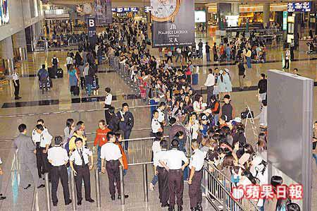 當東方神起五子步出抵港大堂時,過百名fans蜂擁而上,不過現場只有五名穿着西裝的保安維持秩序,場面混亂。fans自發圍圈為偶像開路,但因人群不斷送上禮物導致場面混亂失控,保安勒令不可送禮。此外,剛於美國開演唱會的劉德華在Rain抵港後十五分鐘亦步出機場,有近五十名fans接機,華仔向fans致歉說:「唔好意思,呢個時候簽唔到名。」