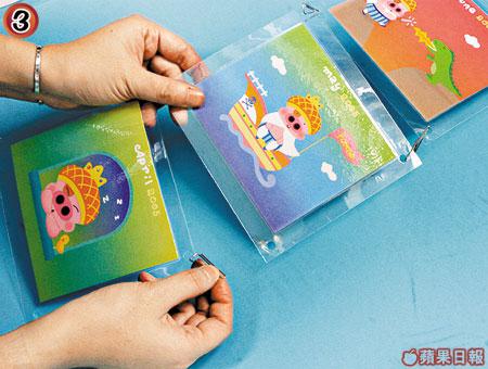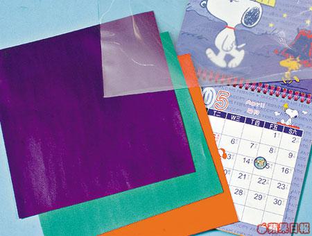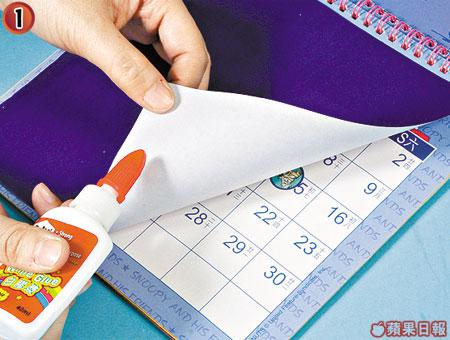 選擇掛牆式月曆,大抵貪其夠慳位,而這款上揭式大圖畫月曆,其實是變身為活頁相架的的好材料。做法簡單,只需將印上日子的一邊貼上顏色紙及透明膠片,便可套入相片,改裝後月曆變成一個有12頁的相架,隨時可揭上揭落Show不同相片。教小朋友做就最啱,讓他們建立環保知識之餘,亦可保留他們心愛公仔月曆。