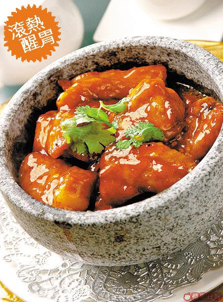知道葉璇怕豬肉嘅腥味,師傅特別以泰國雞醬及蜜糖煮成醬汁,酸甜醒胃,加上以石燒鍋上,使醬汁滲入排骨內,好滾熱!