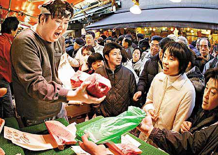 心情好也要「醫肚」,上野商店街Ameyoko人頭湧湧,大家都趁着年尾大減價搶購應節美食(圖二)。