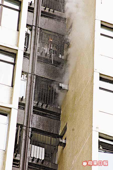 【本報訊】沙田大圍顯徑邨一戶人家昨日辦理女兒出嫁喜事,一家人在住所內上香拜祭祖先,新郎稍後接走新娘後,女方家人亦離開寓所往吃早餐,豈料其間神枱上的龍鳳燭懷疑燒着附近雜物,導致閉門失火,冒出大量濃煙,驚動鄰居報警,消防員稍後接報到場破門將火撲熄,單位略受損毀,幸無人受傷。新翁事後狼狽脫掉鞋子善後,而女兒原訂下午的「三朝回門」亦被迫改期。