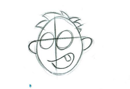 2.在橢圓形上畫眼、耳、口及頭髮。