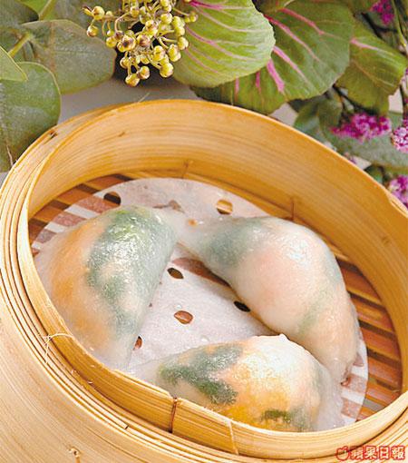點心師傅取西洋菜的味濃,去配合清甜的鮮蝦及由東瀛來港的爽口蟹子,盡顯傳統「包功」。