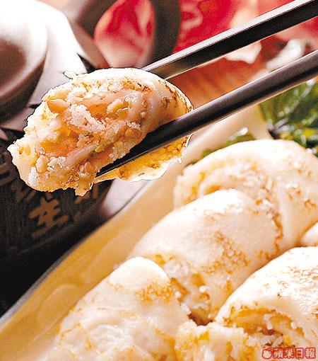 以蝦米、臘腸及鯪魚肉打造而成的魚身。盛上米盞滙合已炸香的蓮藕片,配杞子酸甜汁同吃,香口開胃。