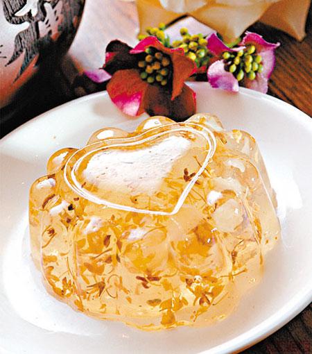這個清香潤肺的糕點,主要是以桂花及雪耳所製成。煮熟凝固後的桂花糕晶瑩剔透,口味清淡,定必成為飯後最佳甜品。