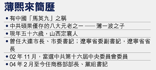 「薄熙來部長是一個強硬的談判對手,對於談判細節有非常強的把握能力,有強烈的個性。」歐盟貿易專員曼德爾森曾如此形容談判對手、中國商務部部長薄熙來。