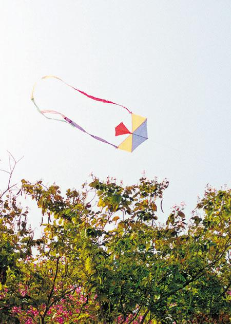 用線將A部份的紙與竹條綁緊,並在風箏尾部加上彩帶,靚晒!