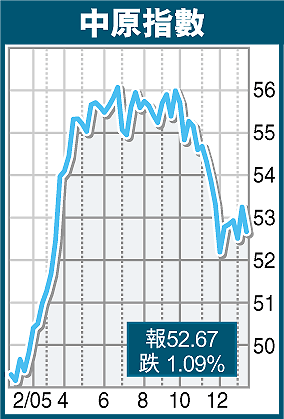 樓價升跌,睇中原指數好清楚。今個月截至十五號一周,指數報五十二點六七,較前周回落零點五八。上個月以嚟,指數一直喺五十二至五十四上落,至今未突破。 中原黃良昇好樂觀,話指數浪高於浪,加上息口見頂,農曆新年過後,會有季節性旺市,所以,預期樓價有得升。