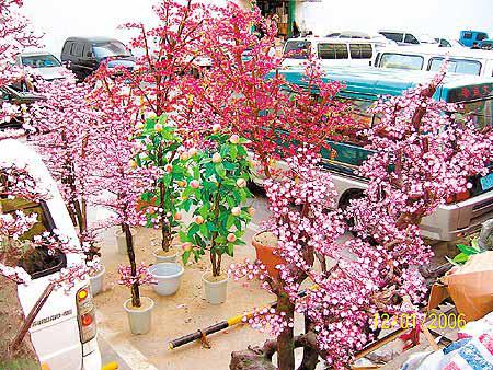 還有一個星期就到農曆新年,布置家居可以考慮周末到深圳筍崗文具批發市場看看。這裏產品不僅價廉物美(平均較市面平三至五成),品種亦相當齊全和新穎。據當地商販表示,今年絲花製品、仿真度極高的桃花,廣受消費者歡迎,每棵大小不同,賣十多元至二百多元不等。 本報記者