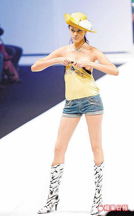 官恩娜、李璨琛及梁洛施昨日在灣仔會展,為三個青春時裝品牌包括AstroBoy、SisterJoli及Playboy行騷,其中一名穿上tubetop的模特兒行騷時衫身下滑,不慎露出nudebra,甚為狼狽。 官恩娜與李璨琛接受訪問時表現得老友鬼鬼,她表示入行前已認識對方,並笑言當時是「死口靚妹遇上死口靚仔」。問他們有沒有發展機會?官恩娜笑說:「唔會啦,佢唔會鍾意我呢種肉條形。」官恩娜又透露不滿意自己的假哨牙,所以打算稍後箍牙,為期半年。 採訪:RitaLeung 攝影:ChenWaiOn
