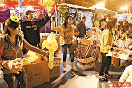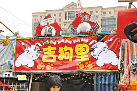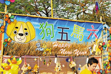 花巿年年有,今年特別旺,不過要成功淘金,都要花點心思。一個花市至少有百幾檔,就算貨品點特別、檔口唔搶眼,途人好易行過就算。要令人眼前一亮,最簡單係以布置取勝,例如檔名玩食字,好似「狗五馬六」、「狗咬狗骨」咁,一於以騎呢鬼馬取勝!